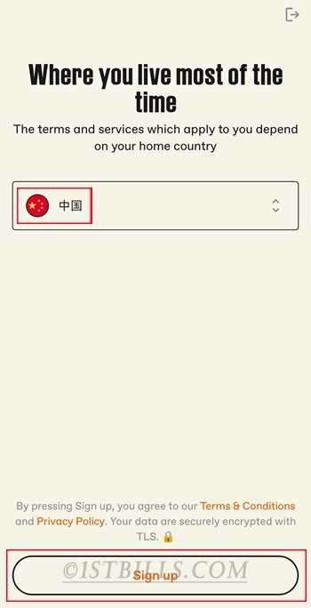 国家选择“中国”,然后就可以点击“Sign up”按钮进行注册了