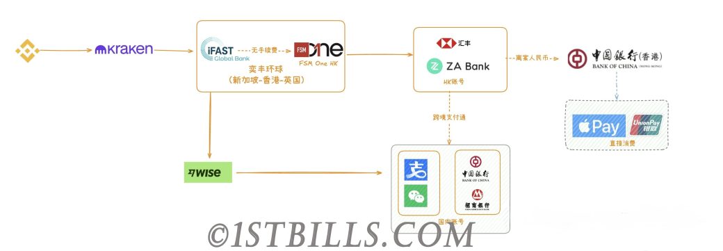 Kraken → iFAST → FSM One HK → 中银香港 / 汇丰 → 国内